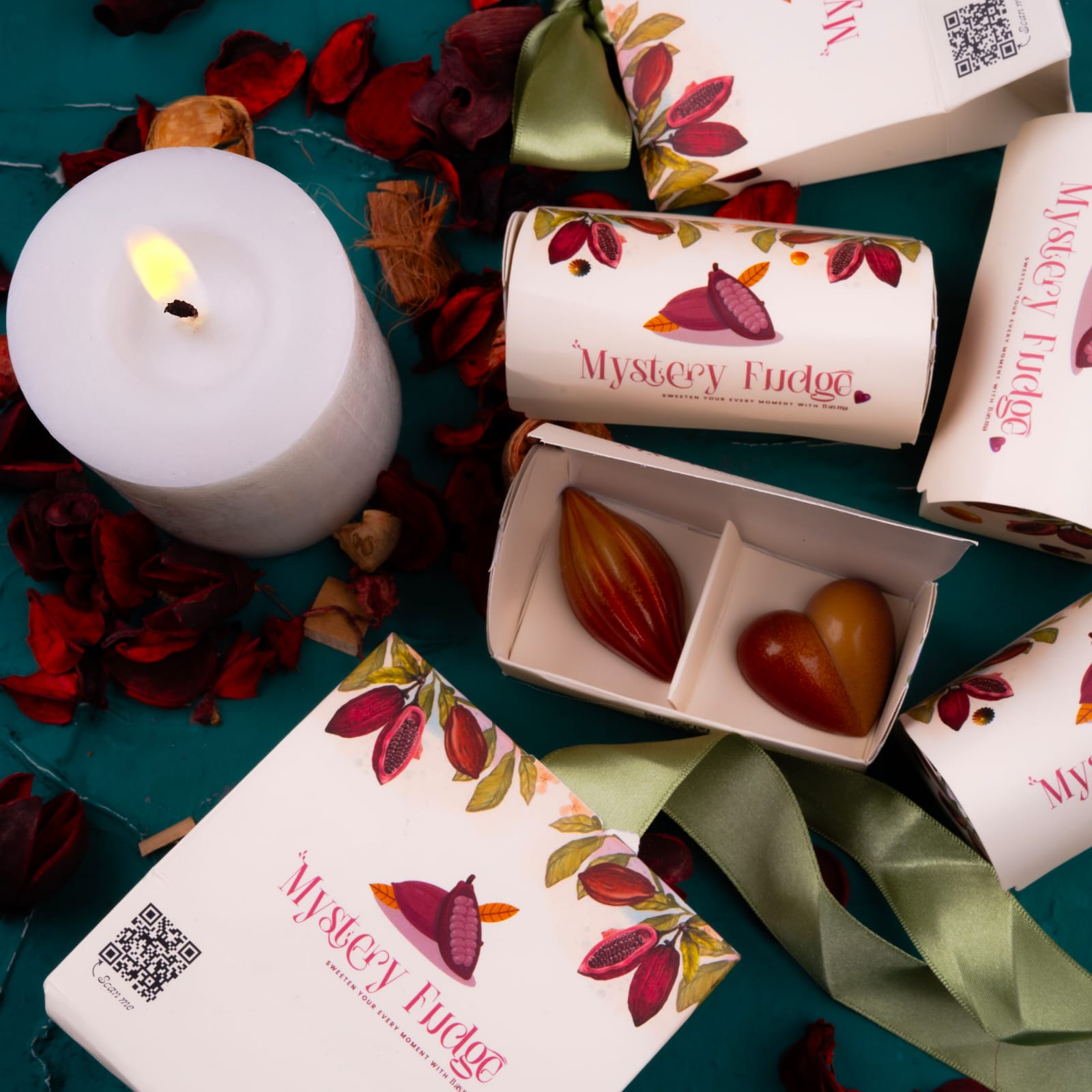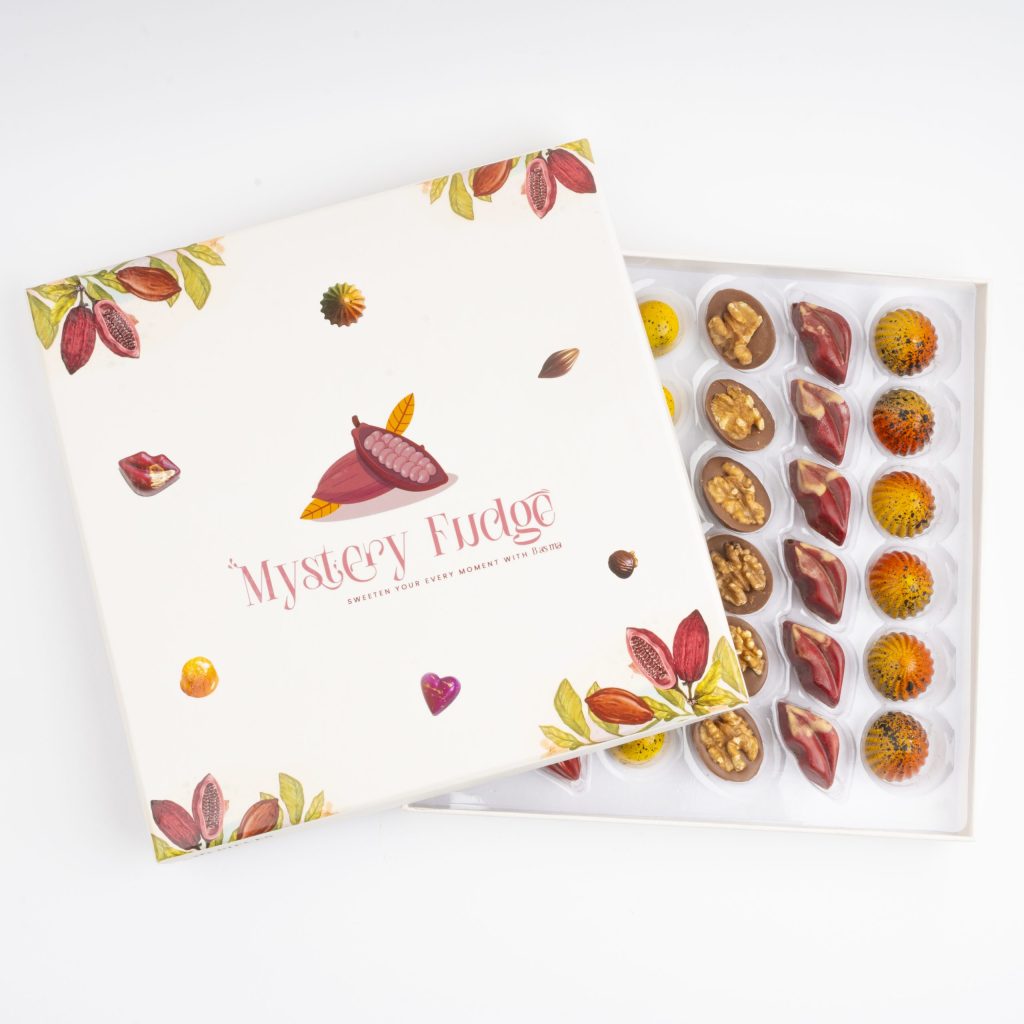 احتفلوا بمناسباتكم الخاصة بأناقة وذوق لا يُنسى مع شوكولاتة Mystery Fudge – الهدية المثالية لكل لحظة مميزة، من كتب الكتاب والخطوبة لاحتفالات النجاح والذكريات الجميلة.